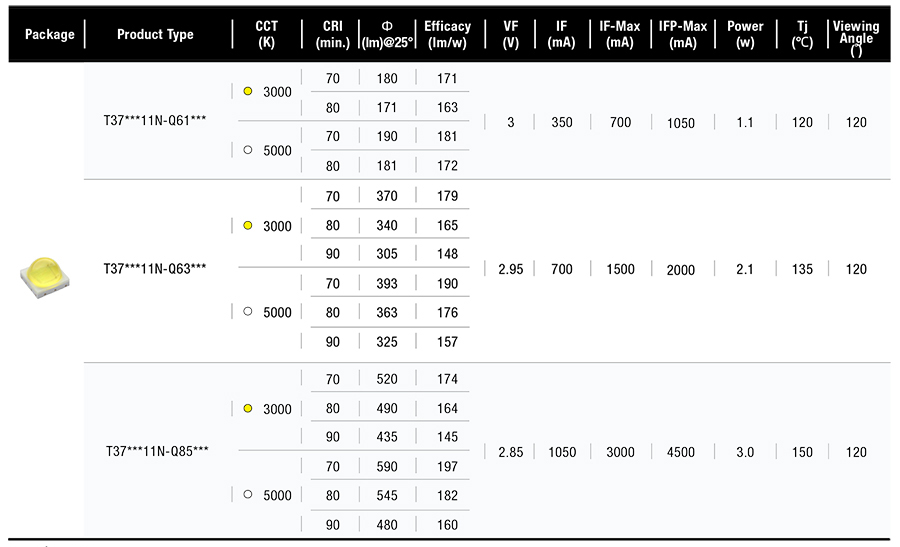 • 帶lens設(shè)計(jì),符合小角度&高中心光強(qiáng)設(shè)計(jì)需求