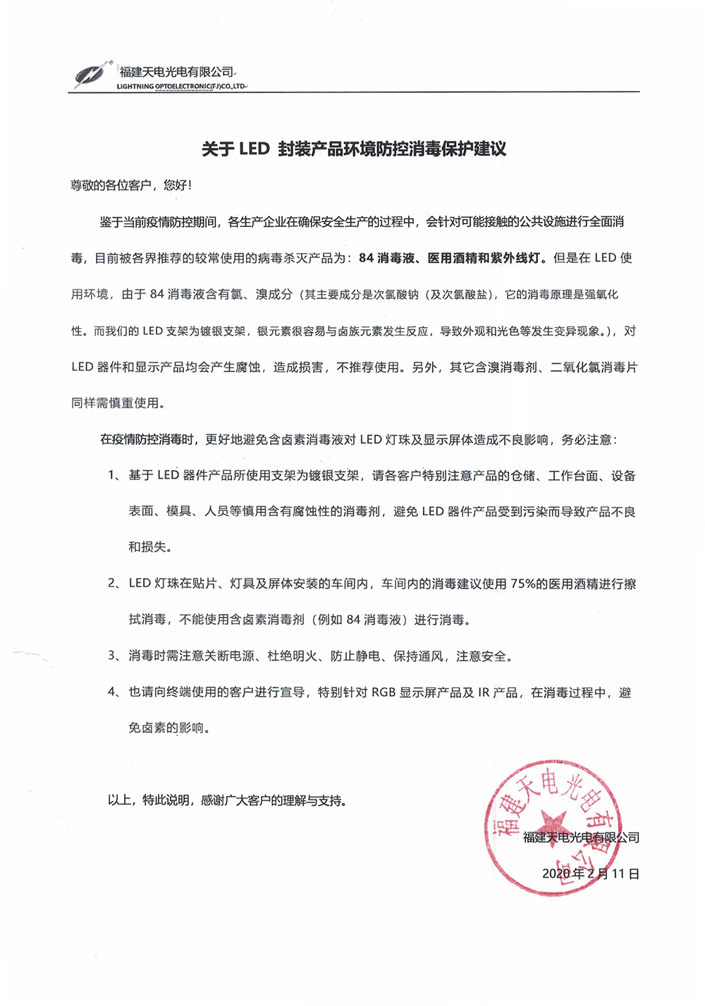 關(guān)于LED封裝產(chǎn)品環(huán)境防控消毒保護(hù)建議