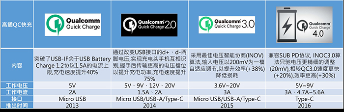 2013年芯片界大佬高通首先突破 USB BC 1.2 的限制,將充電電流提升至2A ,充電速度提升40%,