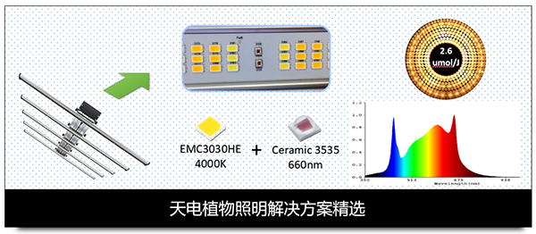 以天電高效的C3535-660nm以及3030白光,可以實(shí)現(xiàn)整燈2.6umol/J的大麻燈方案。